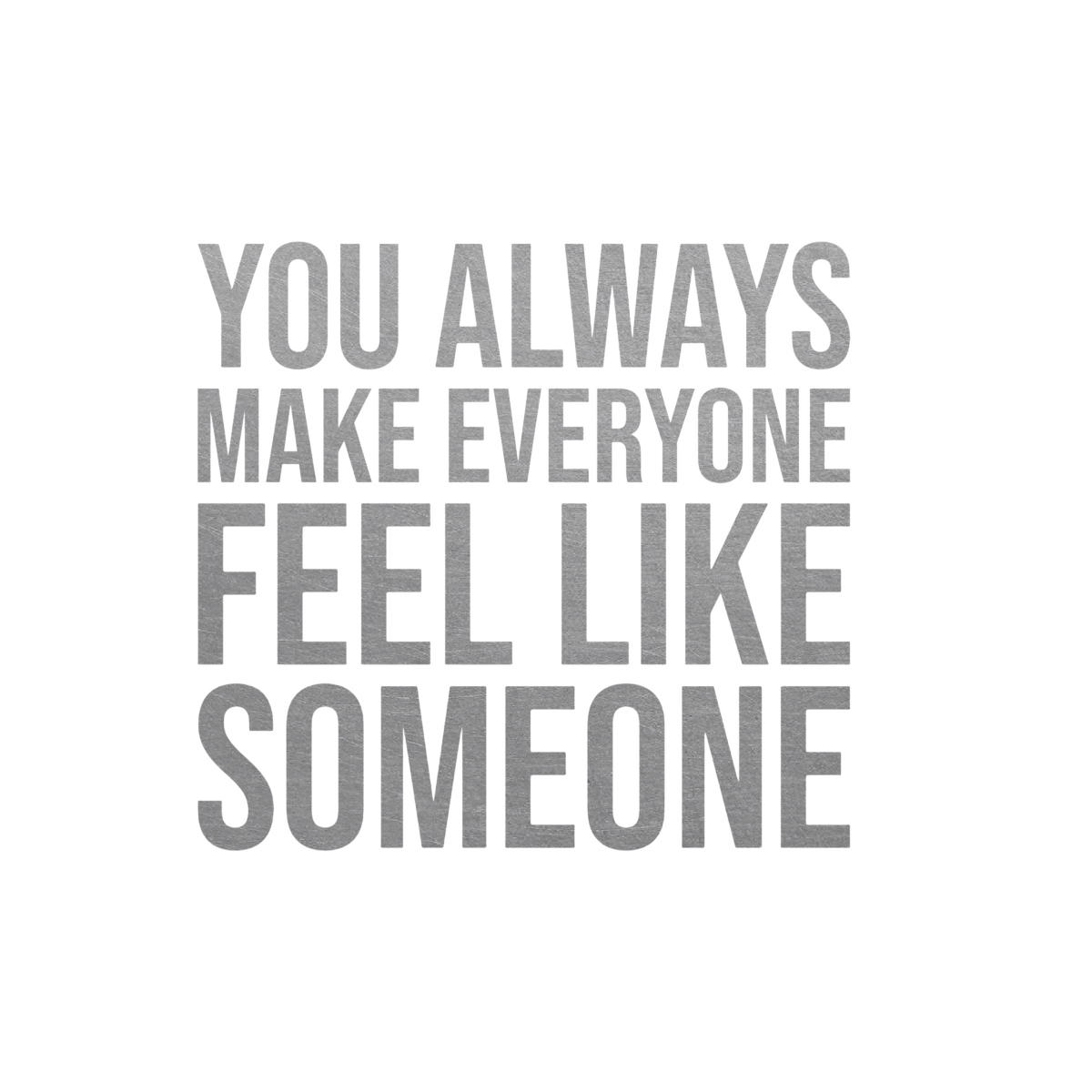 YOU ALWAYS MAKE EVERYONE FEEL LIKE SOMEONE