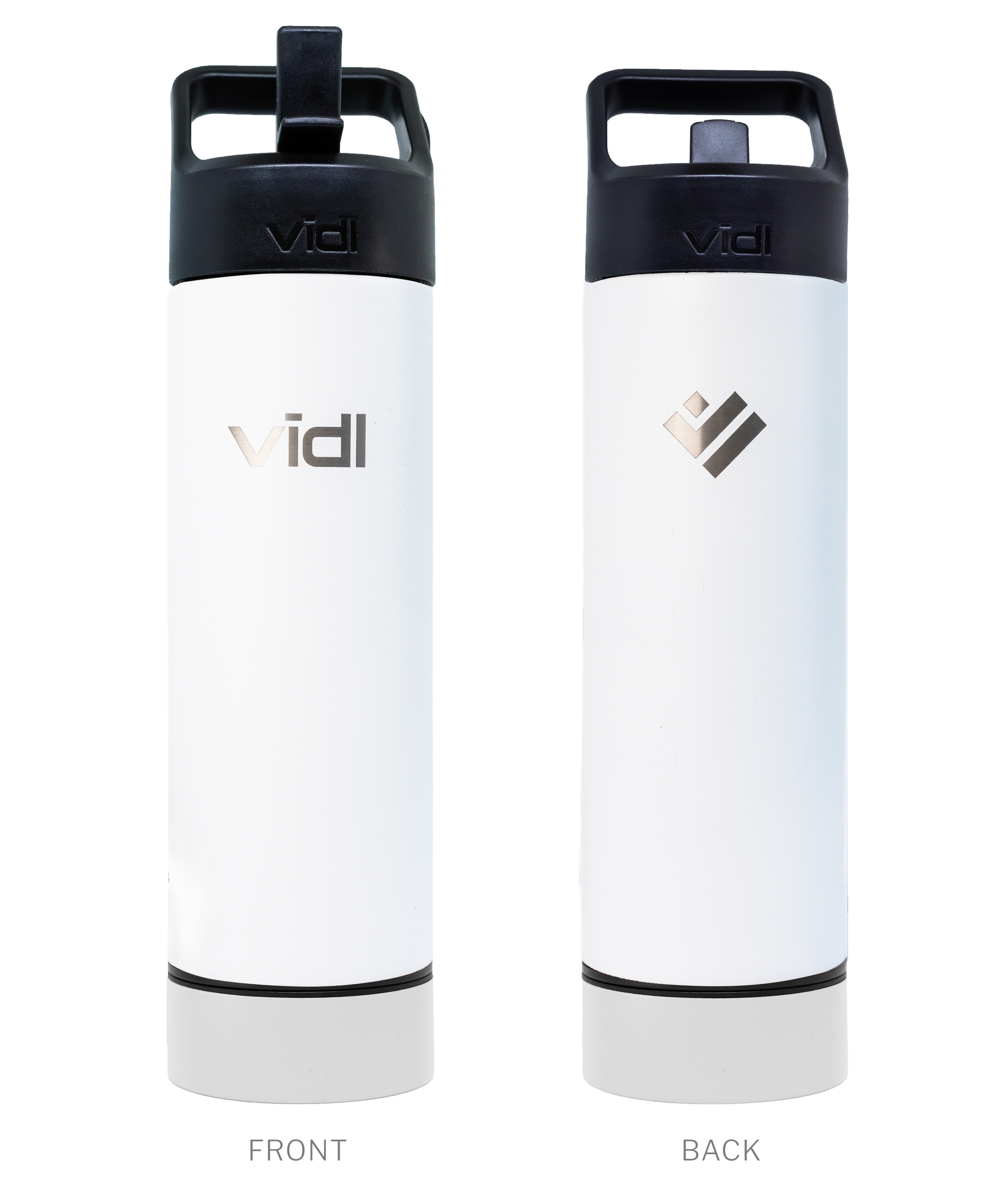 20 oz, double-wall, vacuum-insulated stainless steel bottle with a twist-off, sealed storage compartment.