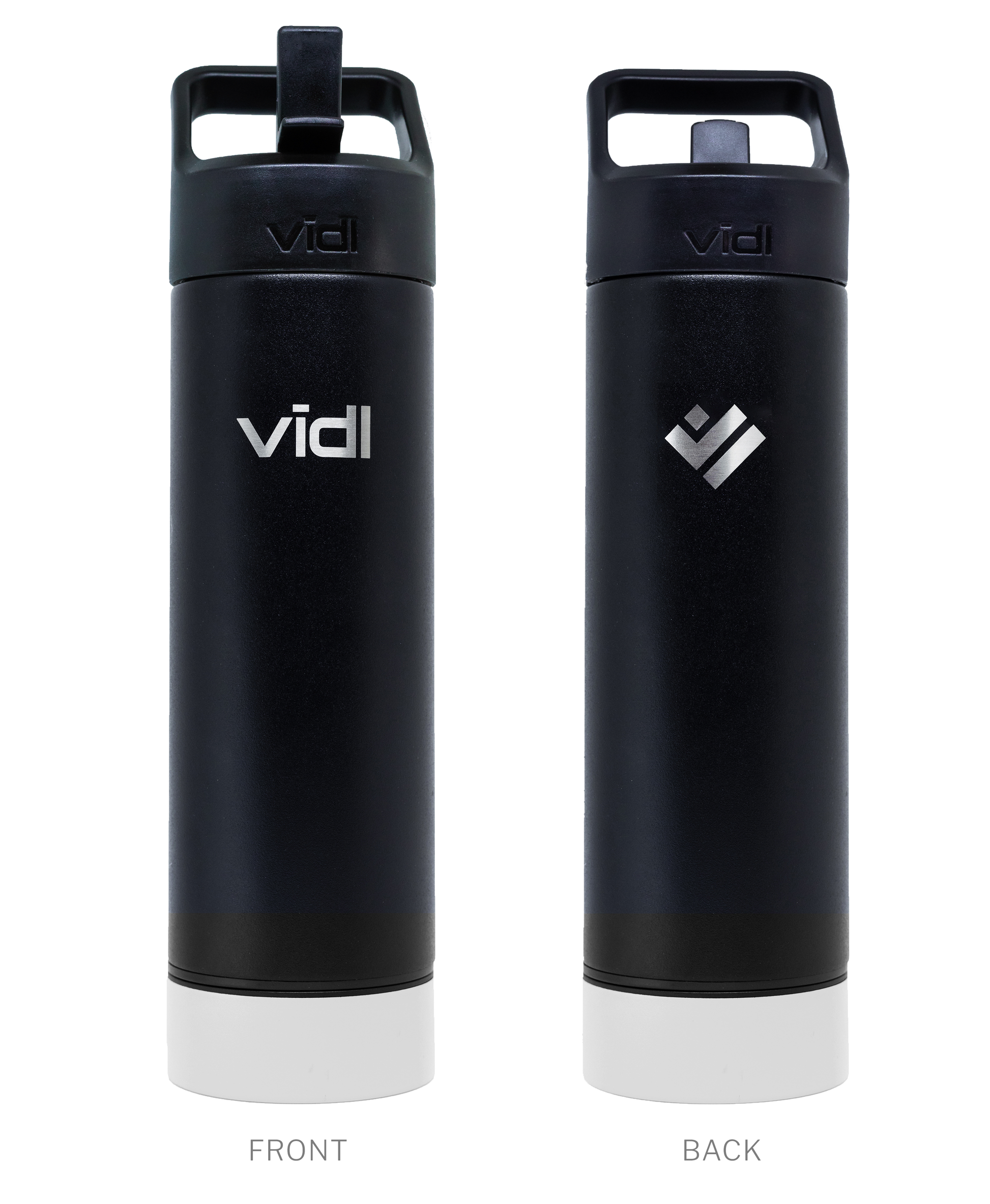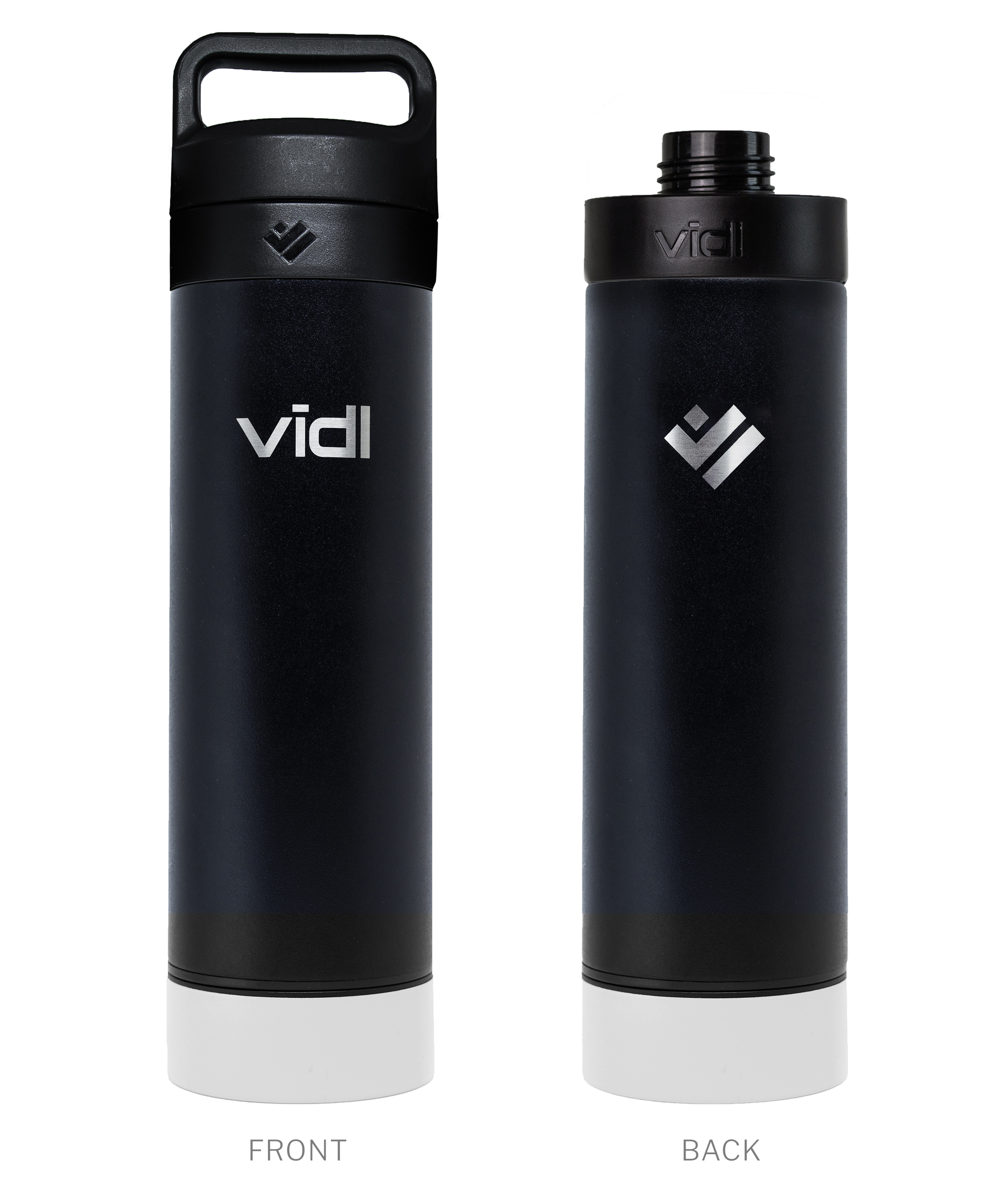 20 oz, double-wall, vacuum-insulated stainless steel bottle with a twist-off, sealed storage compartment.