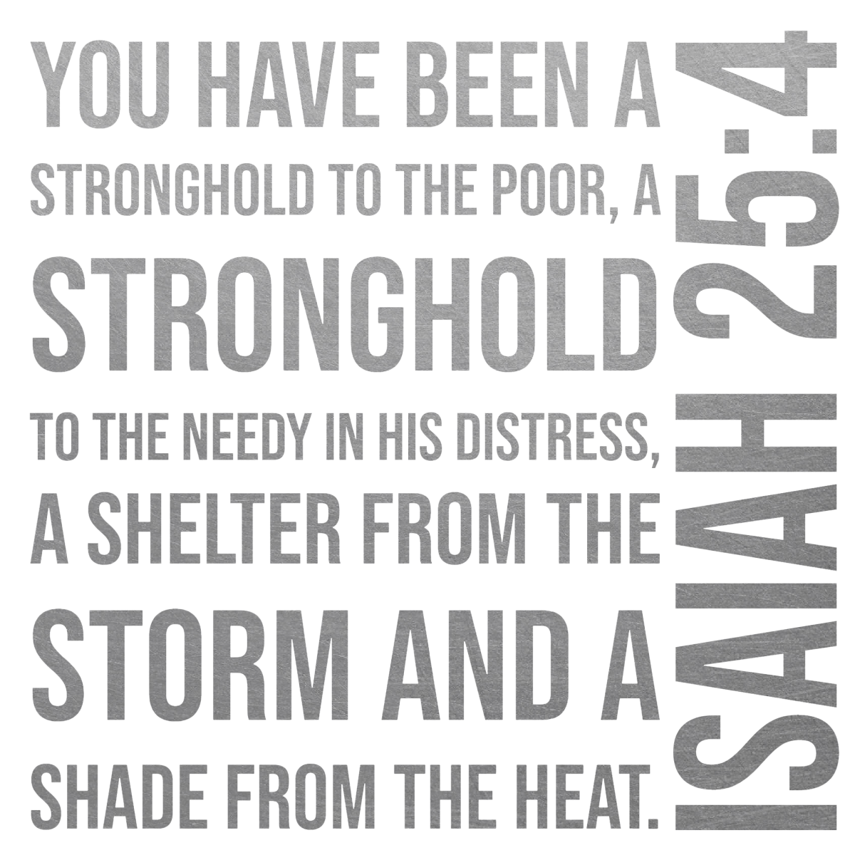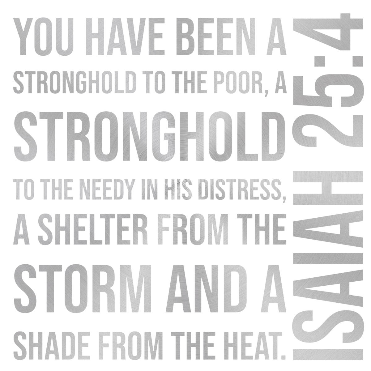 You have been a stronghold to the poor, a stronghold to the needy in his distress, a shelter from the storm and a shade from the heat. Isaiah 25:4